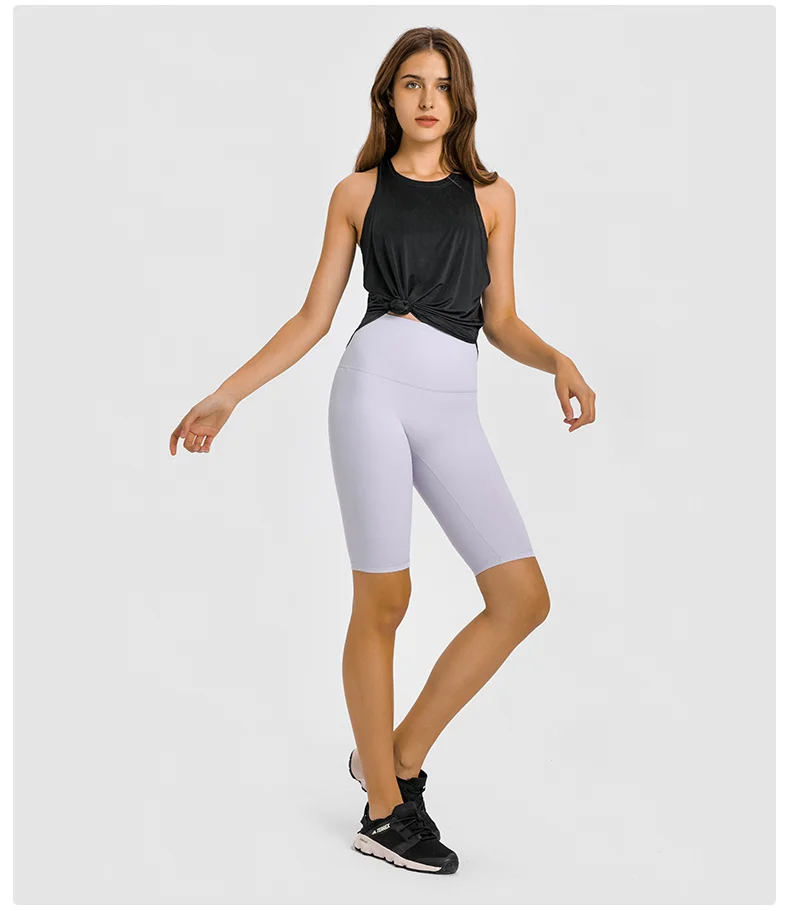 2 In 1 Open Bank Yoga Tank Tops Built In Bra Fitness Top Gym Wear Women Summer Ice Feel Shock Proof Workout Sports Shirts