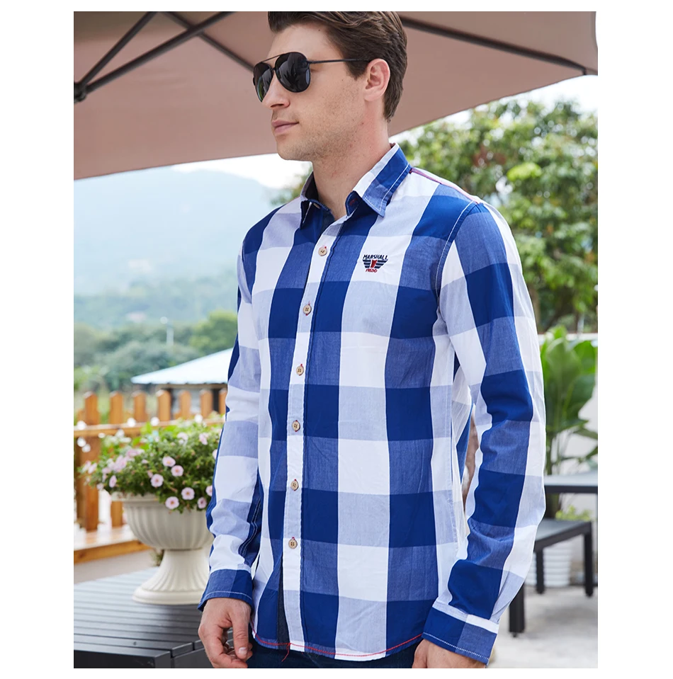 2020 New Men 100% Cotton Plaid Shirt Long Sleeve Slim Fit Dress Shirts Casual Fashion Business Social Shirt Plus Size M-3XL 099