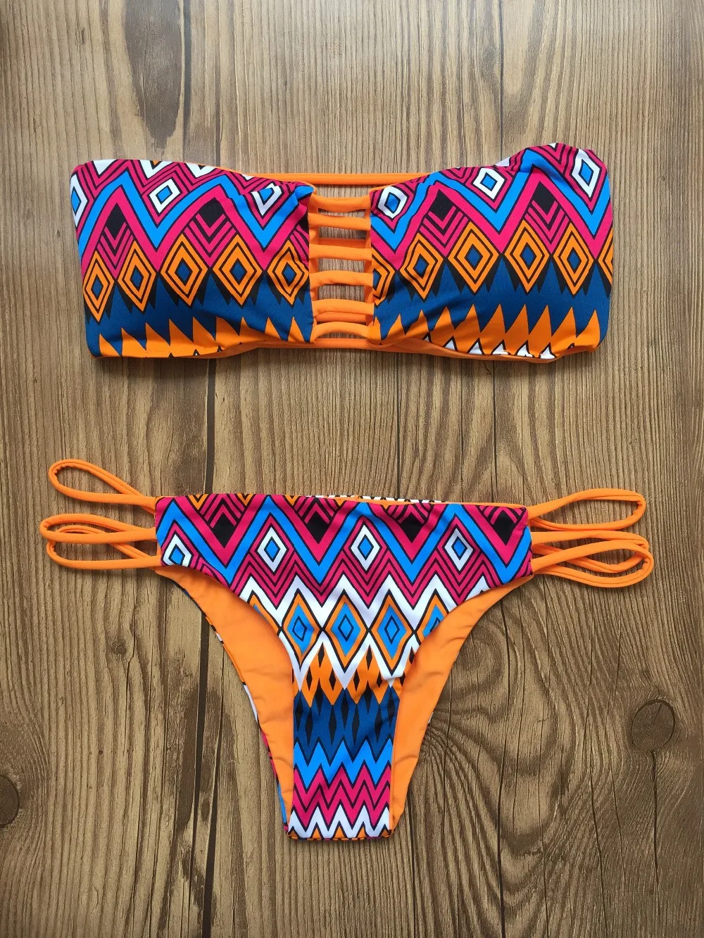 2022 Women Bandeau Bikini Reversible Print Swimsuit Strappy Swimwear Biquini Trikini 1112