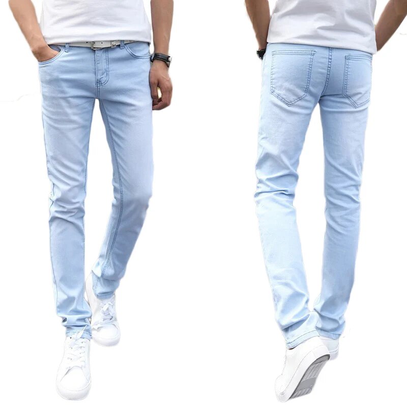2023 New Fashion Men's Casual Stretch Skinny Jeans Trousers Tight Pants Solid Colors Cotton Stretch Denim Pants Cowboy Trousers