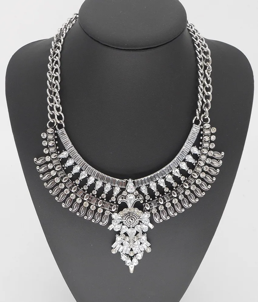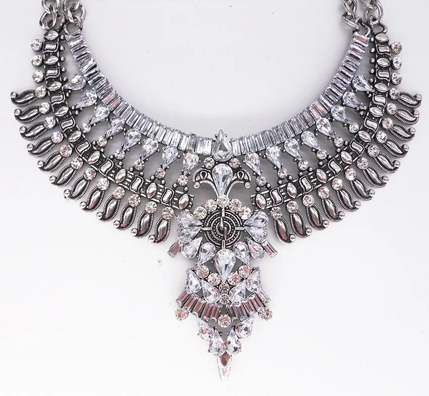 2023 New Fashion Silver Plated Vintage Statement Large Collar Necklace Women Indian Ethnic Big Bib Alloy Choker Necklace Jewelry