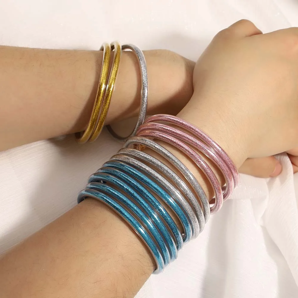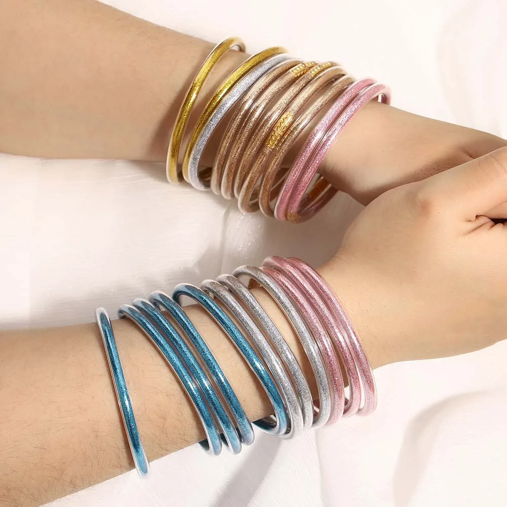 9pcs Glitter Jelly Bracelet Set Women's All Weather Tibetan Buddhist Temple lucky Charm Bangle Gift for Girls Mother's Day Party