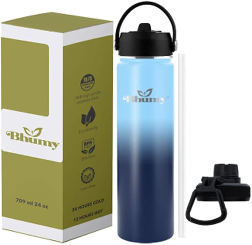 - A Must-Have for the Active Lifestyle: The Bhumy water bottle is constructed with a rust-resistant food-grade stainless steel double-walled body and Stainless Steel Water Bottle with Straw. Itβs easy to stay hydrated with the Bhumy water bottle. Vacuum-insulated, portable, and durable, this water bottle helps you get your water intake and maintain an active and well-balanced lifestyle.