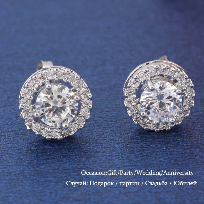 Classic Round AAA+ Cubic Zirconia Stud Earrings For Women Party Gift Crystal Earings Fashion Jewelry For Men oorbellen AE177