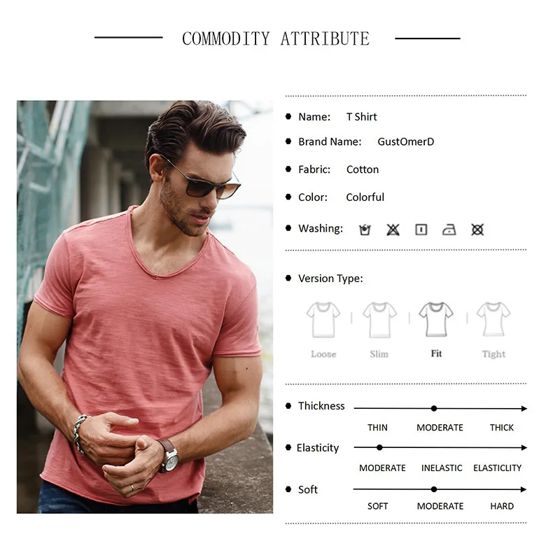GustOmerD Brand Quality T shirt Men's V-neck Slim Fit Pure Cotton T-shirt Fashion Short Sleeve T shirt Men's Tops Casual Tshirt