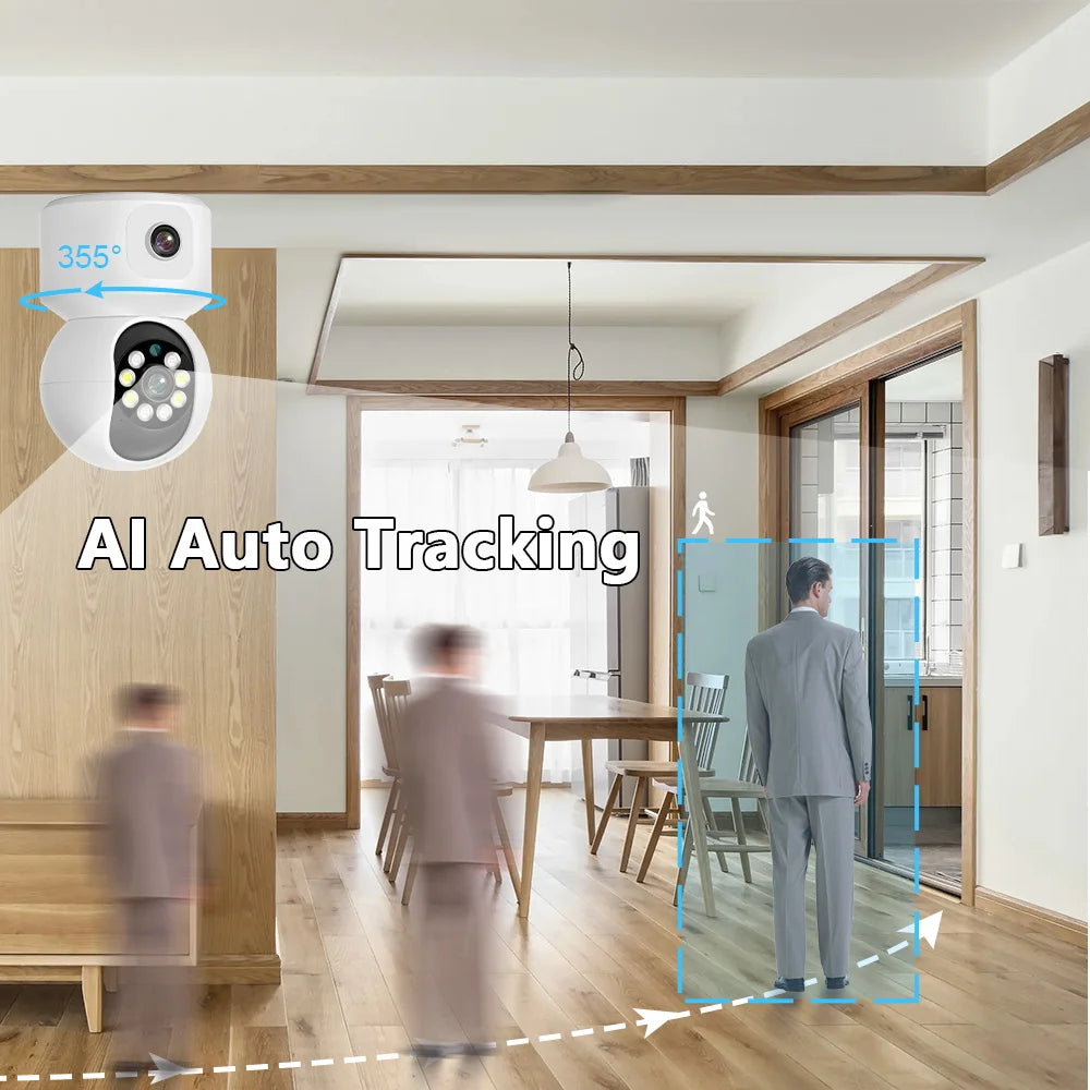 Mccpuo 4K 8MP Dual Lens WIFI PTZ Camera Dual Screen Baby Monitor AI Human Auto Tracking Indoor Home Security CCTV iCsee Alexa