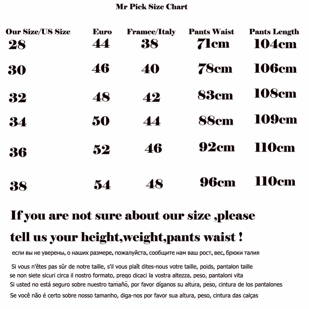 Not Sure Size ? Tell US Height,Weight, Pants Waist