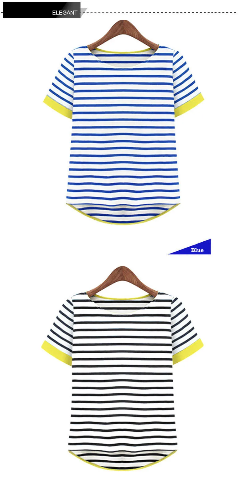 New Women Tops O-Neck T-Shirt Short Sleeve Striped T Shirts Tees Blusas Femininas Free Shipping M L XL XXL XXXL XXXXL Plus Size