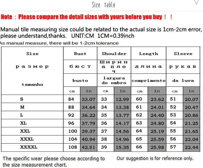 Please compare the size table carefully before order . If you have any question , please contact our Online customer service , we will do our best to help you . Thanks .