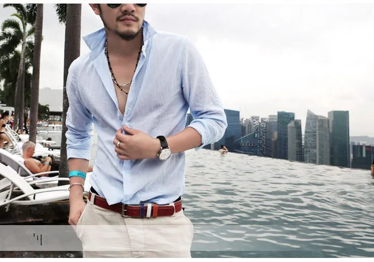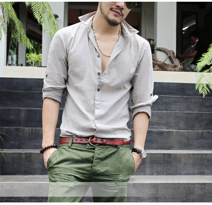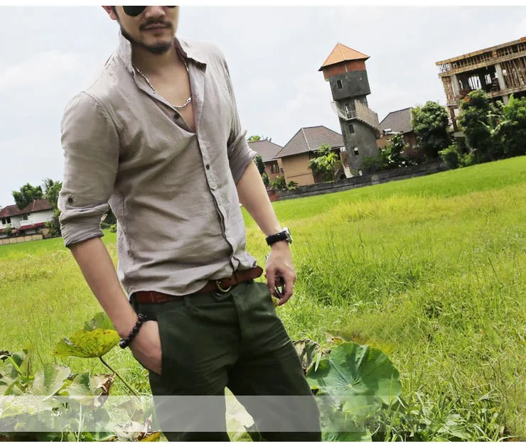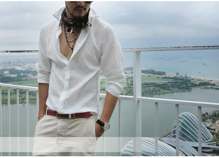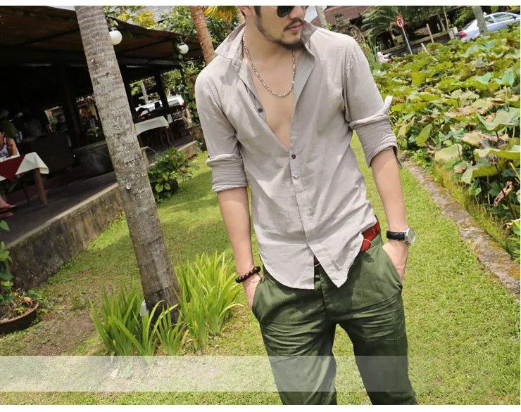 Plus Size Shirts Cotton Linen Men Shirt Long Sleeve Summer Style Hawaiian Shirts Sexy Slim Fit Men Clothes New Arrival C01