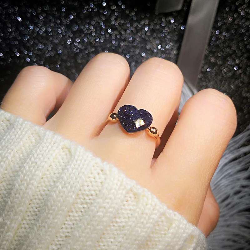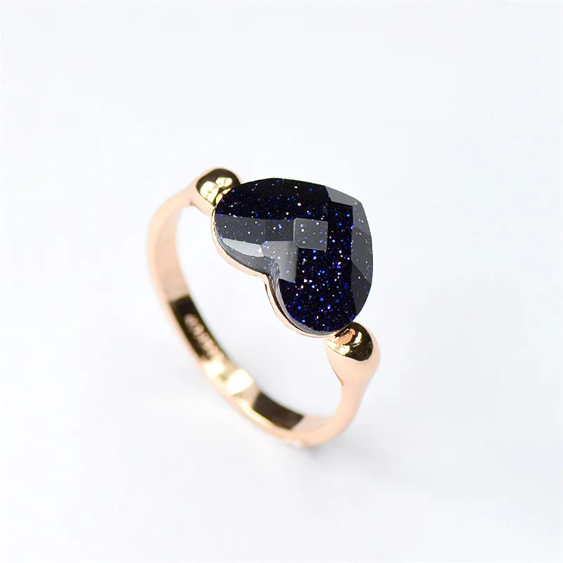Rigant Crystal Rings Heart Shape Dropshipping Blue Sands Black Rose Gold Color Crystal Jewelry Wholesale for Women Girl Gift