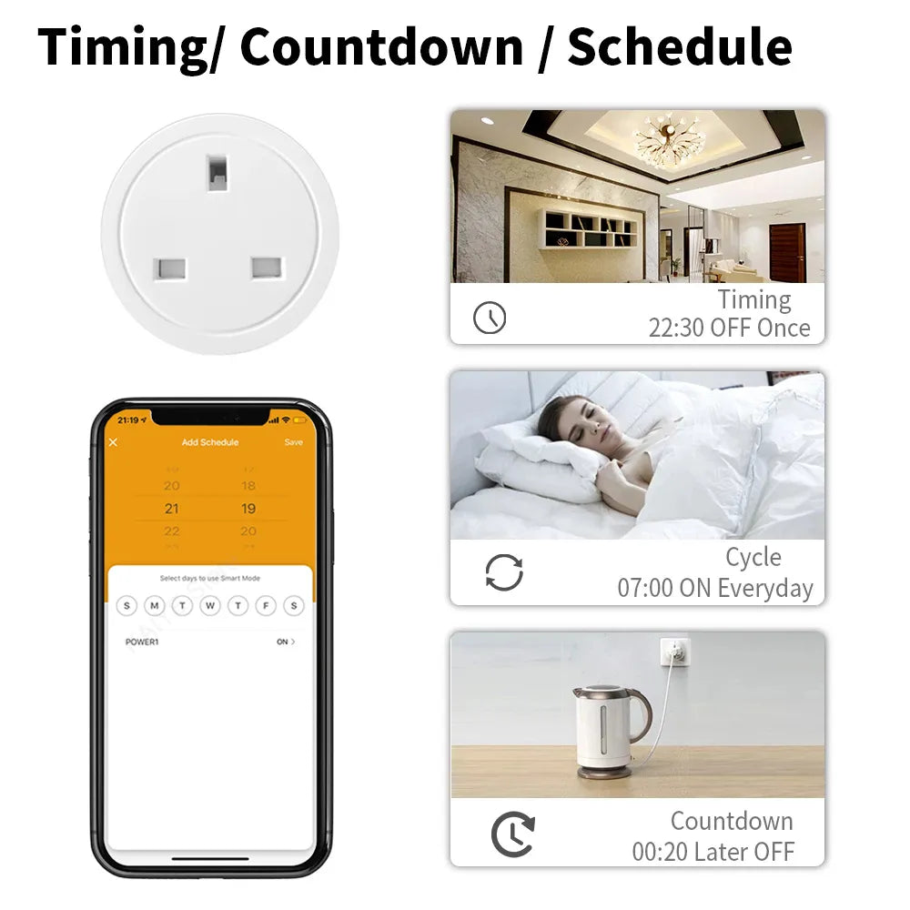 Tuya 20A Zigbee Smart Plug UK Socket Power Strip Mini Home Wireless Outlet with Energy Monitor Compatible with Alexa Google Home