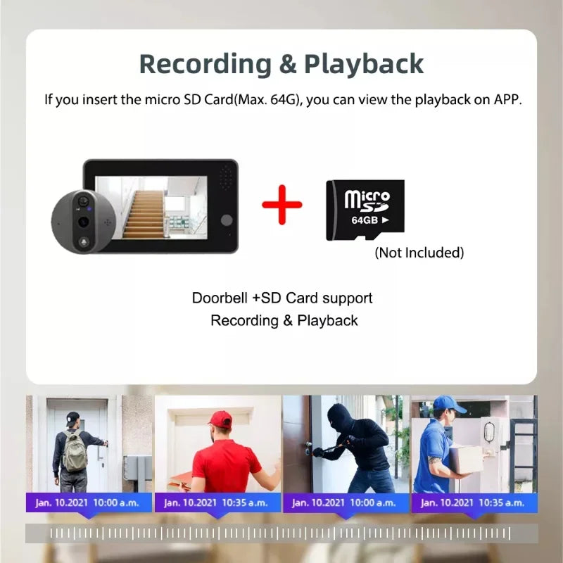 Our doorbell camera supports 2-way Audio,wherever you are,you can comunicate directly with people in front of you home.