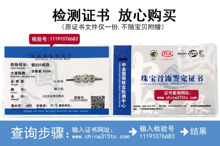 White Copper Vintage Handmade Five Emperor Coin Open Ring Auspicious Ruyi Bring Big Money Ward Off Evil Change Luck Amulet Ring