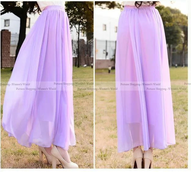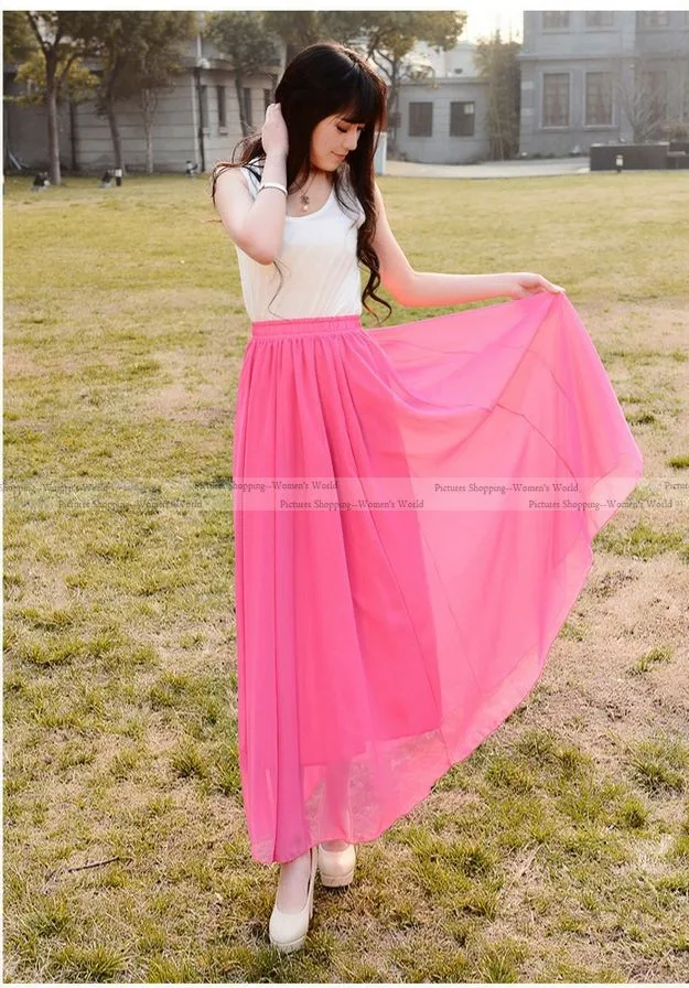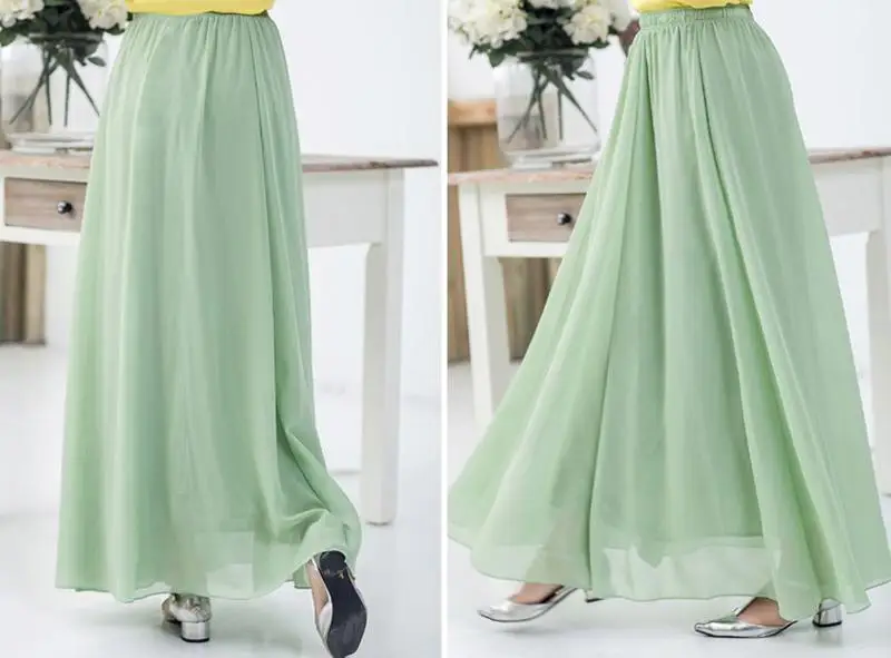 Women's Elegant High Waist Chiffon Skirt Elastic Waist Casual Long Maxi Skirts Saias 80/90/100cm 22 Color 2020 Summer Autumn New